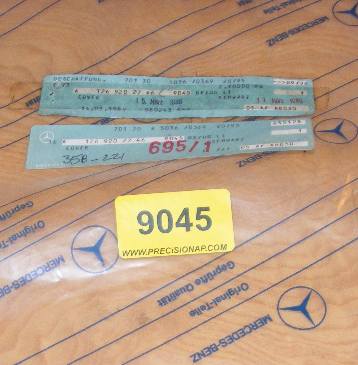 LEFT REAR BOTTOM SEAT COVER BLACK 9045 PERFORATED LEATHER 420SEC 500SEC 560SEC